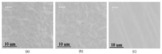 The Raman spectrums of the surface of bare hydrophilic PTFE, ethanol-treated hydrophobic PTFE, and hydrophobic PTFE are shown in Figure 5. It can be seen that the bare hydrophobic PTFE and ethanol-treated hydrophobic PTFE have the same band positions and similar peak intensities at 290 cm−1, 386 cm−1, 732 cm−1, 1215 cm−1, 1298 cm−1, and 1378 cm−1. It means that the molecular structure of two kinds of PTFE is consistent, in other words, the material composites of the hydrophobic PTFE are not changed by the ethanol treating process.