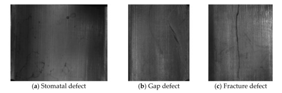 - The non-contact detection method based on machine vision [2,3] usually adopts image processing algorithms or manual design feature extractors to combine the classifier. Liu T.I. [4] proposed a fuzzy logic expert system for roller bearing defect detection, the system combines frequency response and fuzzy reasoning and has achieved good results. Baygin et al. [5] used Otsu thresholding and Hough transform to extract features from the reference image for the problem of printed circuit board with defects and matched the image to be inspected with the reference image to accurately detect the missing holes on the circuit board. Zhang Lei et al. [6] proposed a fabric defect classification algorithm combining Local Binary Pattern (LBP) and Gray Level Co-occurrence Matrix (GLCM). The algorithm first uses the LBP algorithm to extract the local feature information of the image and then uses the GLCM to describe the overall texture information, and finally, the feature information of the two parts as a whole constructed as the input of the BP neural network, and a higher classification accuracy is obtained. Denis Sidorov et al. [7] proposed an automatic defect classification method based on the p-median clustering technique, the proposed method uses the p-median combinatorial optimization problem to complete the clustering problem, which can be sued in semiconductor and other manufacturing industries. In general, compared with artificial visual inspection methods, the above methods have the advantages of safety and reliability, high detection accuracy, and long-term operation in complex production environments, which effectively improves production efficiency and quality inspection efficiency. However, in a real and complex industrial environment, there are generally small differences between surface defects and background, low contrast, large differences in defect scales, and various types of defects. The design of image processing algorithm schemes and artificially designed feature extraction schemes typically requires rich expert experience and a large number of experiments, resulting in high cost and time consumption, and the effectiveness and generalization cannot be guaranteed, and it is difficult to obtain better detection results.