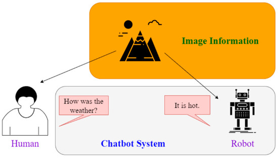 Deep learning as a field of research has burgeoned in the early 21st century. Its technological developments are diverse and have been applied to many research topics [11,12,13,14,15]. The present paper features deep learning techniques to resolve questions that chatbots cannot answer due to environmental contexts. The first step toward this type of practical learning is to enable bots to understand the present environment through visual images and to describe the environment through text. The most direct method is to design bots that use image caption technologies to understand their environments. The original purpose of image captions was, and is, to automatically generate annotations for an image. For example, if an image is entered as input, the image caption model can write a sentence about the image based on the image status. Therefore, in this article, the described method enables the bot to view its present environment clearly and to know about any object in its environment. Conventional chatbot models typically are only able to perform model training based on context; this type of model training is unable to consider image data. Even if the model can understand its present environment, it cannot incorporate the understood image data into dialogue responses. In this study, the proposed method can deepen the chatbot model’s considerations of the results of its previous conversations, and together with the current dialogue, can train the chatbot. A statement generated by image caption technology can also be an input for the chatbot and can be incorporated into the next dialogue. This method enables the chatbot to answer questions more accurately; the highly diverse responses vary based on the present environment.