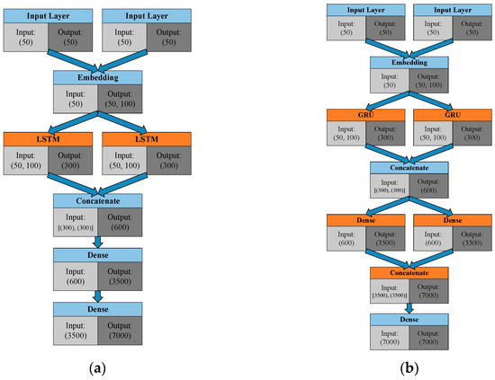 Architecture of the chatbot: (a) LSTM version; and (b) Enhanced GRU version.