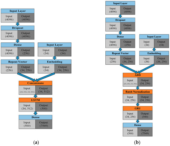 Architecture of the image caption: (a) LSTM version; and (b) Enhanced GRU version.