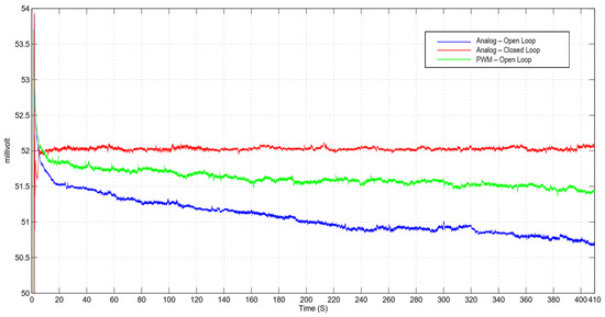 The open loop analog illuminator has a simple command interface and a limited noisy output. The power supply circuit requires current feedback to keep the current stable at a steady state. The increase in temperature leads to a decline in the conversion efficiency, which produces a decrease in the light output of the activated LED.