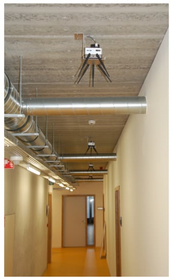 A subset of imec Wireless OfficeLab sensor nodes, deployed on the ceiling in an office environment spanning different floors of 805 m, separated by reinforced concrete.