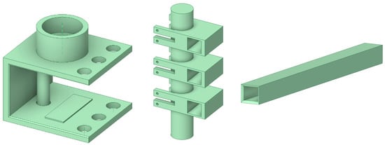 The designed guardrail can be assembled in construction, which dramatically saves the time of guardrail replacement. Since the designed guardrail could reduce the impact of vehicle collisions, it can reduce the impact on the bridge’s main structure to a certain extent and can protect drivers and passengers. To improve the safety of the guardrail and to reduce the construction time, a new type of guardrail is proposed; it is composed of beams, a U-shaped base, columns, column sleeves, rubber pads, and steel strands, as shown in Figure 2 []. The crossbeam and the column are connected by M20 bolts, while the bottom of the column and the sleeve are connected by threads. The guardrail base is connected by a steel strand. The three-dimensional structure of the assembled bridge guardrail is shown in Figure 3, and the guardrail is composed of beams, a U-shaped base, columns, column sleeves, rubber pads, and steel strands. In a collision, the beams and columns collide with the vehicle, the collision force is transmitted to the U-shaped base through the column, and the deformation of the steel strand connected to the U-shaped base restricts the displacement of the U-shaped base. The rubber pad increases the friction between the U-shaped base and the bridge structure and reduces the damage to the U-shaped base to the bridge.
