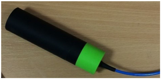 The resulting pressure sensor corresponding to the diagram in Figure 3 is shown in the following Figure 4. The pressure chamber is printed with a black, and temperature chamber with a green, ABS type filament.