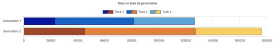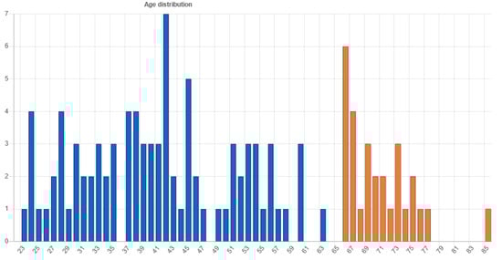 The users were classified in two groups, adults and the elderly, based on their attribution to a specific set of developmental goals described in previous work of Trilar et al. []. Testing participants could select mixed options from both sets in the questionnaire, and were categorized in terms of their prevalent affinity to adult or elderly developmental tasks. To control for possible difficulties in this approach, there was additional input of the year of birth, enabling of post-testing inquiry in the congruence of classification, and assignment of generation according to the age variable. In this case, the adults were 18–64 years old, while the elderly represented the 65 or more segment, which is aligned with authors’ previous research and the findings of research-based user interface design authorities [,].
