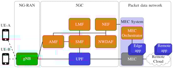 Lastly, the current or NWDAF-predicted position information may be disclosed to OTT applications through the network exposure function (NEF). If the OTT application is instantiated on a multi-access edge computing (MEC) platform, orchestrated by the MNO in proximity of the serving gNB, it can promptly react to the location information received through the NEF. In turn, OTT applications may access the Internet and applications running on a remote cloud, with a variety of services, databases and computational facilities to further elaborate the position information. At the 5GC level, the user plane function (UPF) provides the data consumed by the OTT application on the MEC.