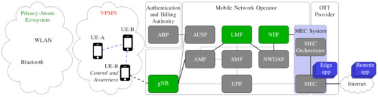 - Mobility management: For UEs to remain connected inside the VPMN, handover procedures should be followed in order to remain connected to the MNO. Moreover, when a UE is disconnected from a VPMN due to movements, a new VPMN should be created with other UEs.