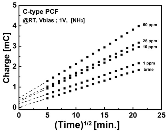 Anson plot of C-type PCF Sensor. Charge transfer corresponds with NH3 concentration.