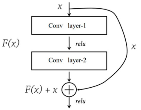 As shown in Figure 4, a residual block—the basic unit of a ResNet—consists of two convolutional layers and a shortcut connection. Through shortcut connections, residuals can be quickly transferred, and gradient problems can be alleviated. The ResNet ensures that the input information can be completely propagated among all layers by using the “shortcut connection” [41]. ResNet can effectively avoid gradient loss or exploding gradients when its network becomes very deep, which implies that the model may improve landslide detection accuracy by increasing its number of layers. No additional parameter or calculation is needed for adding shortcut connection to the network. Two typical ResNet models—ResNet50, and ResNet101—were tested in this study.