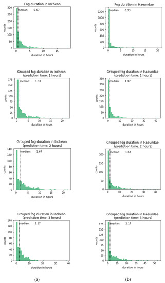 Fog duration in (a) Incheon port and (b) Haeundae beach.