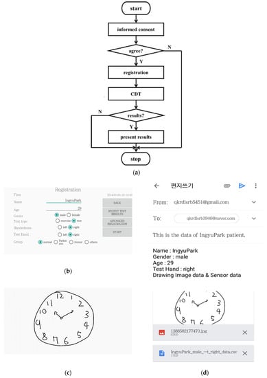 (a) Flow diagram of mCDT operation; screen shots of (b) registration window; (c) CDT window; and (d) results window of mCDT.