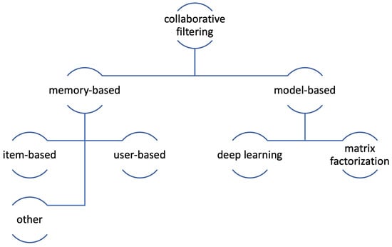 Collaborative filtering approaches fall into two main categories, memory-based and model-based recommendations. The memory-based techniques can be further divided into item-based and user-based ones; this paper also discusses additional, less-known ones. In turn, by the model-based techniques one usually means matrix factorization algorithms and deep learning [42].