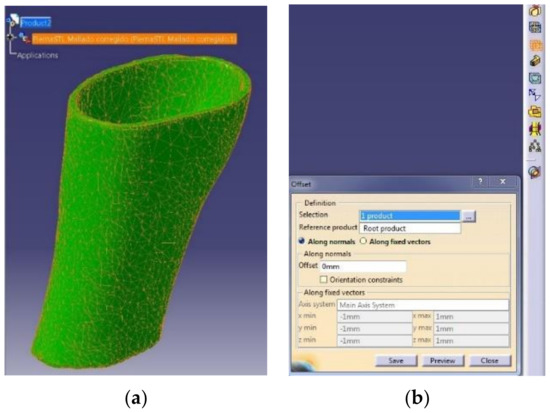 Catia Software. Reduced mesh (a) and offset tool (b).