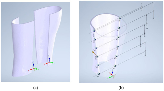 Two sensors for reading pressure are placed. One is placed on the “X” axis and the second on the “Y” axis (Figure 17). The sensors have been placed on these positions for the tests, and the data are collected with the leg in vertical position and weightlessly. However, the potential of these kinds of 3D techniques makes it possible for other medical requirements to also be considered and included during the design process, according to specialist dictated requirements.