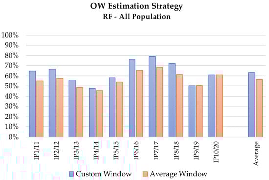 The overall performance comparison of LDA and RF algorithms in the intention prediction is presented at a glance in Figure 2, Figure 3 and Figure 4, which depict the results obtained with the RF algorithm for different OW estimation strategies and lengths respectively, whereas Figure 5 describes the mean computed accuracy of RF with respect to the evaluated data subset.