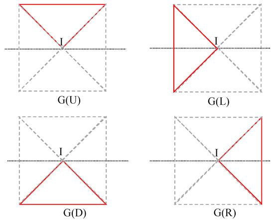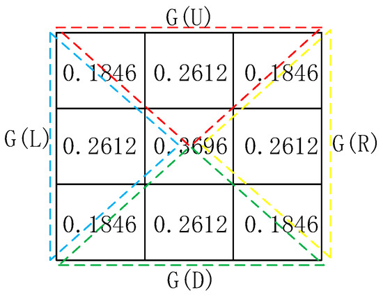 The pixels are convolved using the Gaussian subtemplates in the four directions: up, down, left, and right. Based on Equation (2), the four following expressions can be obtained as follows: