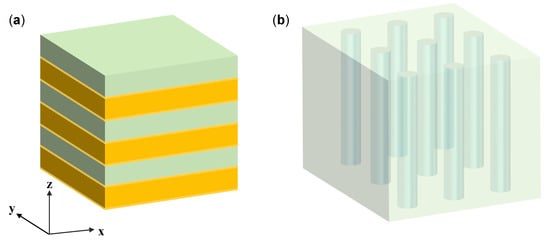 where and denote the permittivity of metal and dielectric, respectively, is the filling ratio of metal. For the nanowire structure in Figure 4b, the parallel component and perpendicular component are derived as [97]: