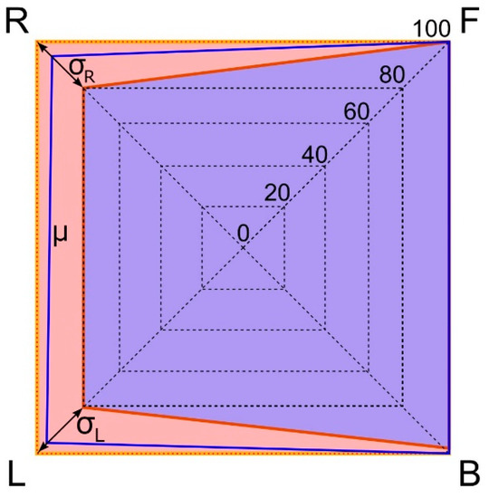 Figure 6 presents this analysis. The radar plot shows that the subject exhibiting the best performance obtained the 100% of correct answers for all four navigational instructions while the subject with the worst performance scored 100%, 100%, 80%, and 80% for F, B, L, and R, respectively.