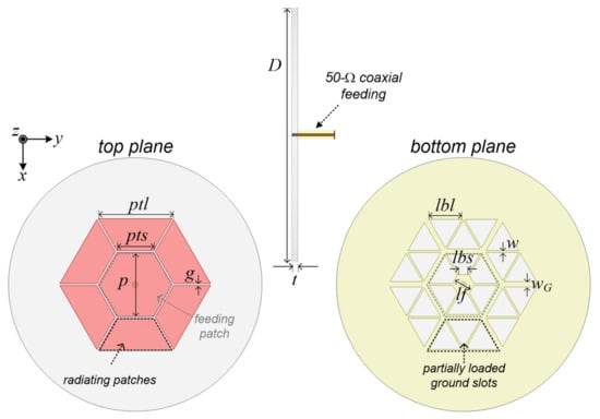- Lee, D.; Kim, K.; Pyo, S. Mesh-Grounded Monopolar Hexagonal Microstrip Antenna for Artillery-Launched Observation Round. Electronics 2019, 8, 1279. [Google Scholar] [CrossRef] [Green Version]