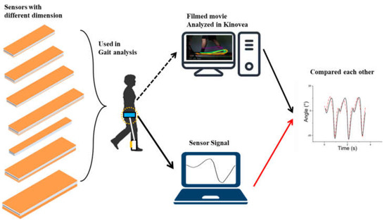 The goal of this study was to determine the differences in the accuracy of gait analysis obtained with flexible capacitance-type sensors of different dimensions. Many previous studies have used flexible sensors to measure human movements [15,16,31]. The results of previous studies indicate that the accuracy of the flexible sensor is reasonable.
