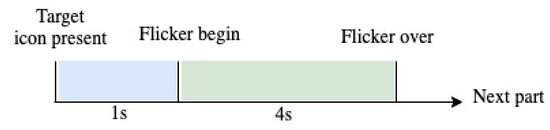Each volunteer completed 15 blocks, and each block consisted of 12 trials corresponding to each stimulus (from Hz to Hz at Hz intervals). In each trial, the user had one second to fix his/her gaze to the target stimulus position, which was indicated by a red square marker. Subsequently, all stimuli started to flicker simultaneously for 4 s on the monitor. It is important to note that the marker was randomly located for each new trial until the volunteer ended a block [35]. Figure 2 shows the time of each trial.