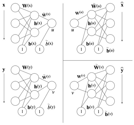 The right-hand side of the two neural networks, shown in Figure 4, represents the inverse mappings for and with the computed canonical variables u and v.