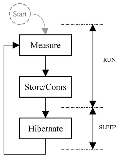 In general, the sensor node executes a single measurement. However, most of their applications requires monitoring of a single or several physical variables. This involves repeating the measurement in a timed manner. For example, the sensor node executes a set of measurements ruled by a scheduler. In other words, it executes iteratively the measurement and data storage or transmission in a time controlled loop. At the last step, the sensor node hibernates to save energy between iterations.