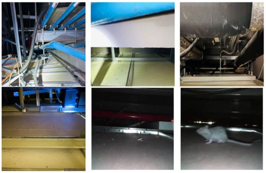 A routine pest control measure is essential in commercial buildings, such as food stalls, offices, shopping malls, etc. Specifically, a routine rodent inspection is mandated in the built environment to prevent rat-borne diseases and to avoid infrastructure damage and electrical or fire accidents. Hence, regular rodent activity monitoring is indispensable to the building management system. Generally, false ceilings seem to be a great place to hide and build their habitat. However, routine rodent inspection in a false ceiling environment has many challenges for pest management companies. Generally, human inspectors are widely used for rodent inspection in a false ceiling environment (Figure 1). They use fluorescent tracking gel, gnawing marks, and droppings to analyze the rodent’s activity. Besides, rodent traps, rodent poison baits, rodent repellents, etc., control rodent infestation. However, the manual inspection method is labor-intensive, time-consuming, and prone to a high risk of accidents because of electrical wire networks, gas pipes, and ducts. Furthermore, due to health difficulties, labor in complex surroundings (maintenance holes, sewage networks), and low wages, a workforce shortage is a key concern for pest management companies. Hence, automating the rodent inspection of the false ceiling is a viable solution.