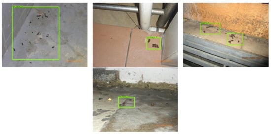 The experiment was performed with different lighting conditions, rodents with occlusion, and various angles of the rodent’s position. Figure 16 shows the rodent activity detection results in the prototype testbed, and its statistical measures are given in Table 2. The experimental results indicate that the algorithm detects and localizes the rodent signs with 89% accuracy, droppings and 3D printed rodents with an accuracy of 93% confident level, and processes 5 FPS from live video streams.
