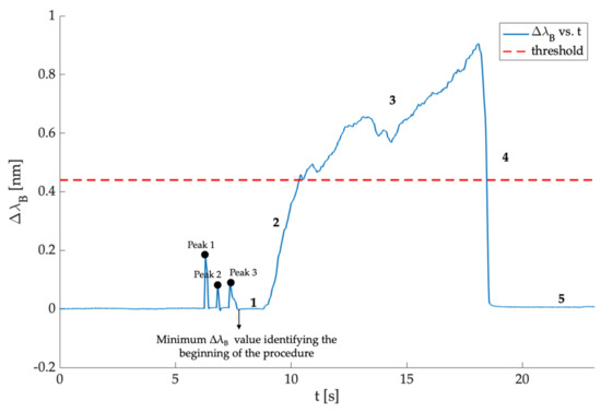 Figure 7 shows one of the trends recorded during the experiments to easily identifying the five phases and the ΔλB threshold. It is worth noting that each procedure has a different duration depending on the time needed by the user to identify the ES.