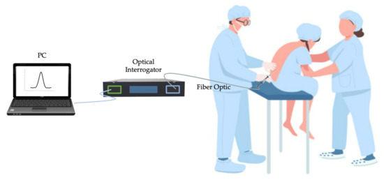 Figure 3 shows the working principle of our proposed system during the epidural procedure to better clarify how it is possible to detect LOR with an FBG-based technology. Basically, the procedure can be divided into two main phases: