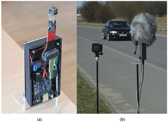 Currently, state-of-art traffic monitoring sensors include radars, lidars and inductive loops [3,4,5]. Newer trends include video analysis from cameras [6,7] and data collection from vehicles [8]. Radars and lidars are used whenever an accurate measurement of vehicles speed is required to ensure safety of drivers and pedestrians (e.g., for traffic law enforcement) [9]. Such measurement devices must be certified; therefore, they are expensive, and they are used mainly for short-term measurements. Cheaper radar sensors, with limited accuracy, are often installed on urban roads, e.g., at the pedestrian crossings. However, radar sensors are active devices, emitting electromagnetic waves. A large number of radar sensors installed in the monitored area increases environmental pollution with electromagnetic waves that may interfere with cellular networks, Wi-Fi devices, etc. The radar itself is susceptible for electromagnetic interference from power lines, airport radar systems, etc., which makes traffic monitoring in certain locations problematic or even impossible. Also, adverse weather conditions, such as intense rainfall, prevent radar sensors from working correctly. Current urban traffic monitoring systems are often based on inductive loops. While they are effective, they need to be installed in the road surface, which may be problematic in some cases. Other means of traffic monitoring, such as pneumatic tubes, are only suitable for short-term measurements, as they obstruct the traffic. Smart city traffic monitoring systems, covering large areas, should preferably consist of passive sensors, robust to interference from the environment. It should be possible to install the sensors in convenient places, without interfering with the existing road infrastructure. Finally, the cost of the sensor (both the device itself and its power consumption) should be low.
