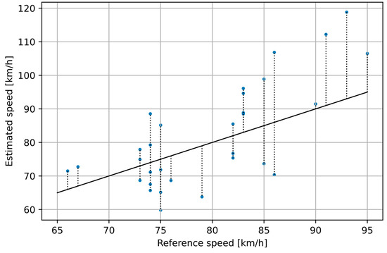 Figure 10. Estimated speed of individual vehicles vs. vehicle speed measured with the reference device.