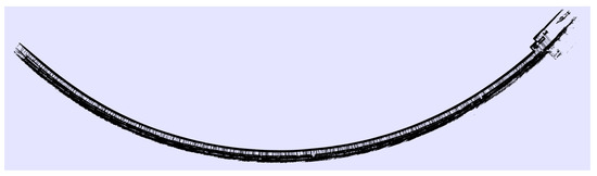 Going further, with an eye to the project requirement achievements, the system was tested in a huge environment, the SPS tunnel, which is a large place with low quantities of features for SMS, as shown in Figure 7 and Figure 8. The environmental reconstruction was produced correctly when the robot moved throughout the ring at a constant speed of 5.5 km/h (1.5 m/s). In these facilities with the corridor provision, other techniques based on 2D LIDARs or SONARs are completely useless, since they can not properly estimate where the robot is located with respect to the previous positions. The system was also checked within other environments, such as a city, obtaining results as shown in Figure 9.