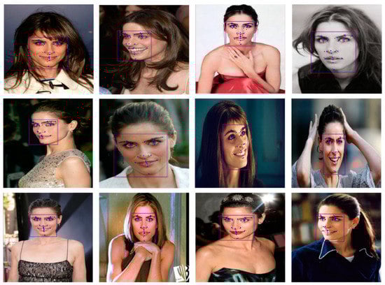 - Zhang, Z.; Luo, P.; Loy, C.C.; Tang, X. Facial landmark detection by deep multi-task learning. In European Conference on Computer Vision; Springer: Cham, Switzerland, 2014; pp. 94–108. [Google Scholar]