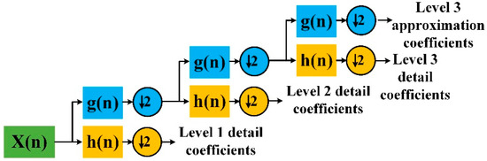 As shown in Figure 4 and formula (7), using wavelet decomposition, a signal can be decomposed into a series of signal superpositions with wavelet function and scaling function: