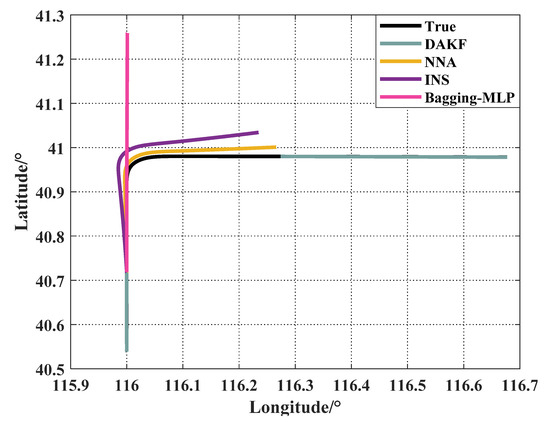 13]. For example, the author uses the position information output by the INS and the output of the interactive multi-model extended Kalman filter (IMM-EKF) to train the extreme learning machine when the GNSS is available. This training model can compensate for divergent position errors during GNSS outage [