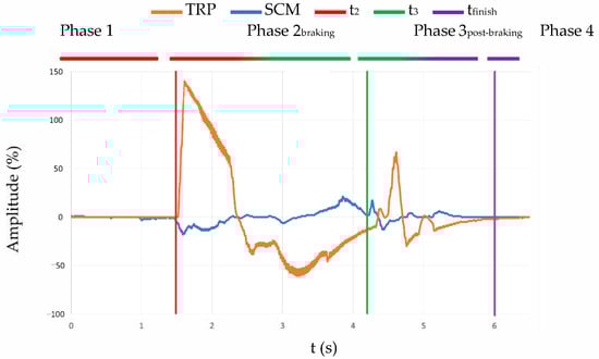sEMG signal from the TRP and SCM muscles through a complete braking experiment.