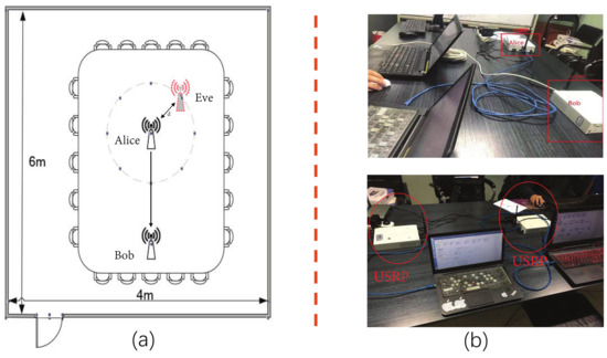 a/g; and the measurement bandwidth is 20 MHz. In our experiments, the sampling frequency of Bob’s receiver is 40 MHz. All channel estimation data in the SD-USRP dataset come from a 6 m × 4 m conference room.
