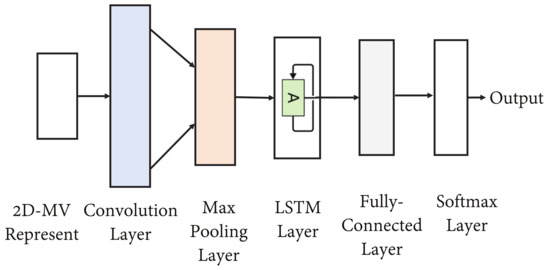 41] to extract features from the 2D-MV. This is followed by a max-pooling layer, and the output is sent into the LSTM layer, which models the short-term and long-term physical layer features. The output of the LSTM is input to a fully connected layer with a ReLU activation function [