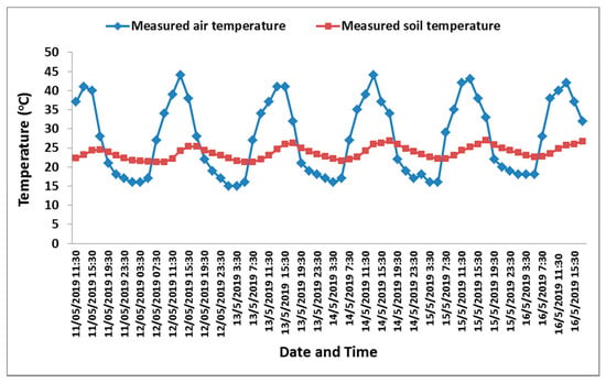 Air and soil temperature (°C) recorded by the designed automated monitoring system.