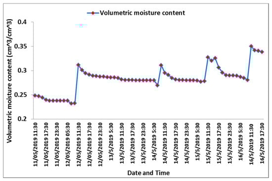Volumetric moisture content (θV) recorded by the designed automated monitoring system.