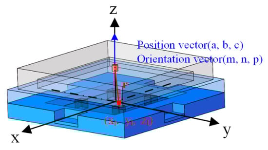 To use the numerical optimization method, it is necessary to construct the objective function. According to Formulas (4)–(6), the theoretical magnetic field value of the permanent magnet at the th three-axis magnetic sensor can be obtained, and the actual measured magnetic flux densities can be obtained through communications with magnetic sensors. The objective function was given by finding the difference between the theoretical value and the measured value of magnetic sensors, as follows: