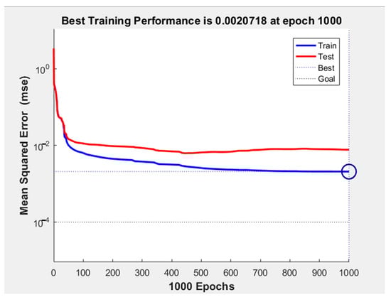 The training process of the neural network is shown in Figure 11. Mean squared error decreases with epoch and has little variation after 500 epochs.