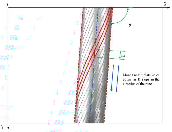 where is the steel wire rope segmentation template and is the translated image. The translation operation is carried out along the extension direction of the rope. The translation angle can be calculated from the slope in Formula (1). The single translation vector satisfies the constraint: