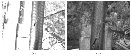 Wire rope image with a defect. (a) Strong light; (b) Weak light.