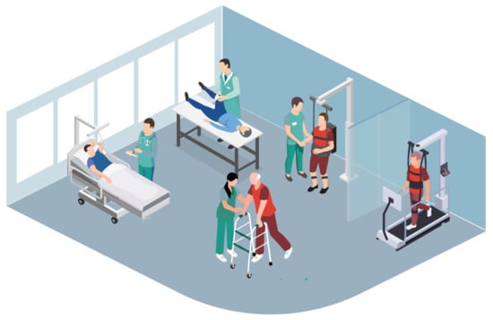 - Iannaccone, S.; Castellazzi, P.; Tettamanti, A.; Houdayer, E.; Brugliera, L.; de Blasio, F.; Cimino, P.; Ripa, M.; Meloni, C.; Alemanno, F.; et al. Role of Rehabilitation Department for Adult Individuals With COVID-19: The Experience of the San Raffaele Hospital of Milan. Arch. Phys. Med. Rehabil. 2020, 101, 1656–1661. [Google Scholar] [CrossRef] [PubMed]