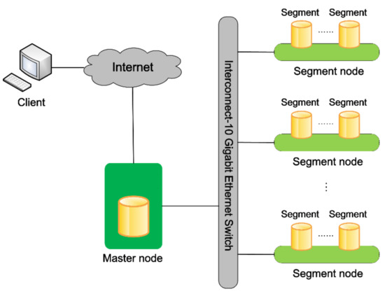 As shown in Figure 5, we built a high-performance computer cluster with one master node, multiple segment nodes, and a Greenplum distributed observational database. The number of segment nodes can be dynamically expanded according to actual needs. The master node is responsible for organizing and dispatching the cluster operation and connecting with the external network. All data are stored on segment nodes. Each segment node can contain multiple segments. A segment is the basic unit for performing database-concurrent operations. The number of segments per segment node may be different according to user requirements and server hardware performance. This kind of cluster application mode has excellent advantages in data query efficiency, especially when the quantity of query data is large [36].