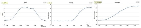 The predicted results of crop growth, yield, and biomass are shown in Figure 15. The predicted results of the soil moisture spatial interpolation model are shown in Figure 16.